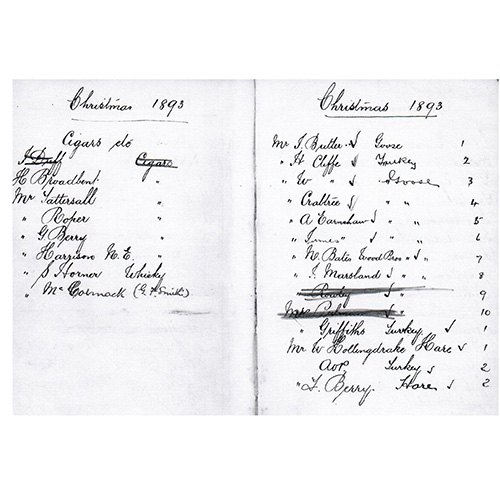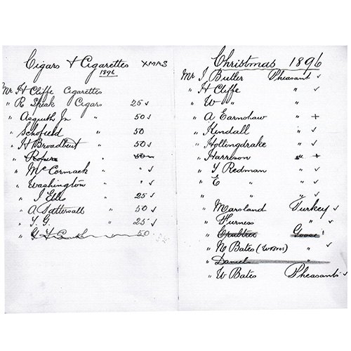 Flipping through the pages of these logbooks, we found a number of lists for Christmas gifts from Pulmans dating back to around the year 1900!